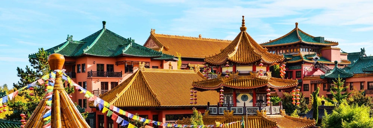 Traditionelle Dachpfannen eigens aus China. Erbaut von Experten aus Fernost. Komplett nach Feng Shui ausgerichtet. Das Hotel Ling Bao ist viel mehr als ein Themenhotel: Es ist so authentisch, dass es als größte Ansammlung chinesischer Gebäude außerhalb Chinas ausgezeichnet wurde.